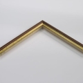 Brown wood picture frame odel 55 with a hockey stick profile brown finish and gold sight edge, available in all sizes.